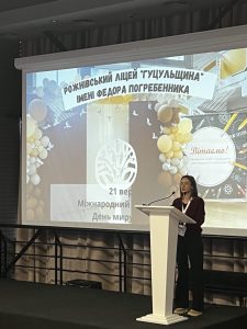 Особливо яскравим був виступ учениці ліцею Софії Сахро на тему «Молодь як агенти миру та сталого розвитку». Софія чітко окреслила роль сучасного покоління у формуванні мирної культури, підкресливши, що молодь не лише вбирає цінності, а й активно впливає на трансформації у своїх громадах.